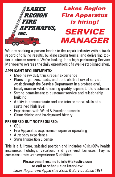 Lakes Region Fire Apparatus is hiring! Service Manager